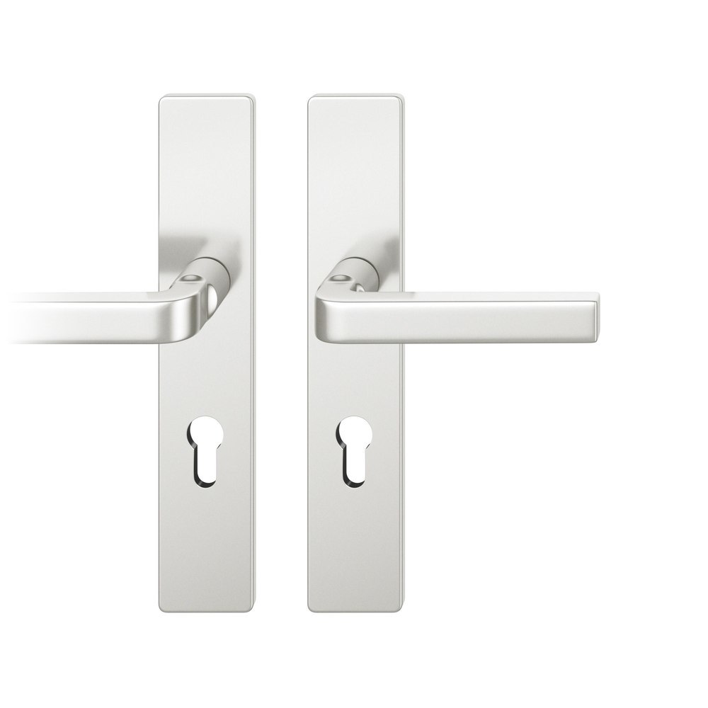 Produktinformationen "FSB Drückergarnitur 72 1004, Langschild, eckig, Profilzylinder gelocht, Entfernung 72mm, Vierkant 8mm, DIN Links, Türstärke 39 - 48mm, mit Stütznocken, naturfarben eloxiert, Ausgleichslager® 3"
