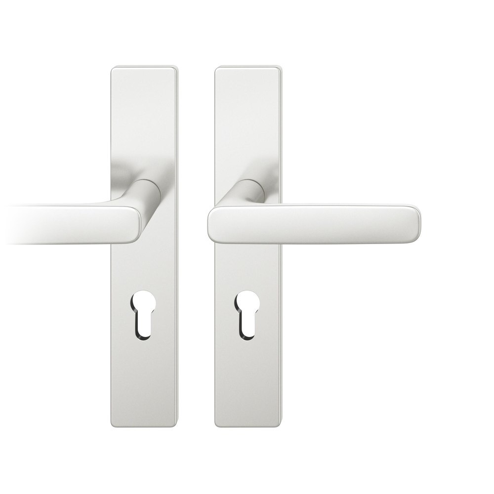 Produktinformationen "FSB Drückergarnitur 72 1289, Langschild, eckig, Profilzylinder gelocht, Entfernung 72mm, Vierkant 8mm, DIN Rechts, Türstärke 39 - 48mm, mit Stütznocken, naturfarben eloxiert, Ausgleichslager® 3"
