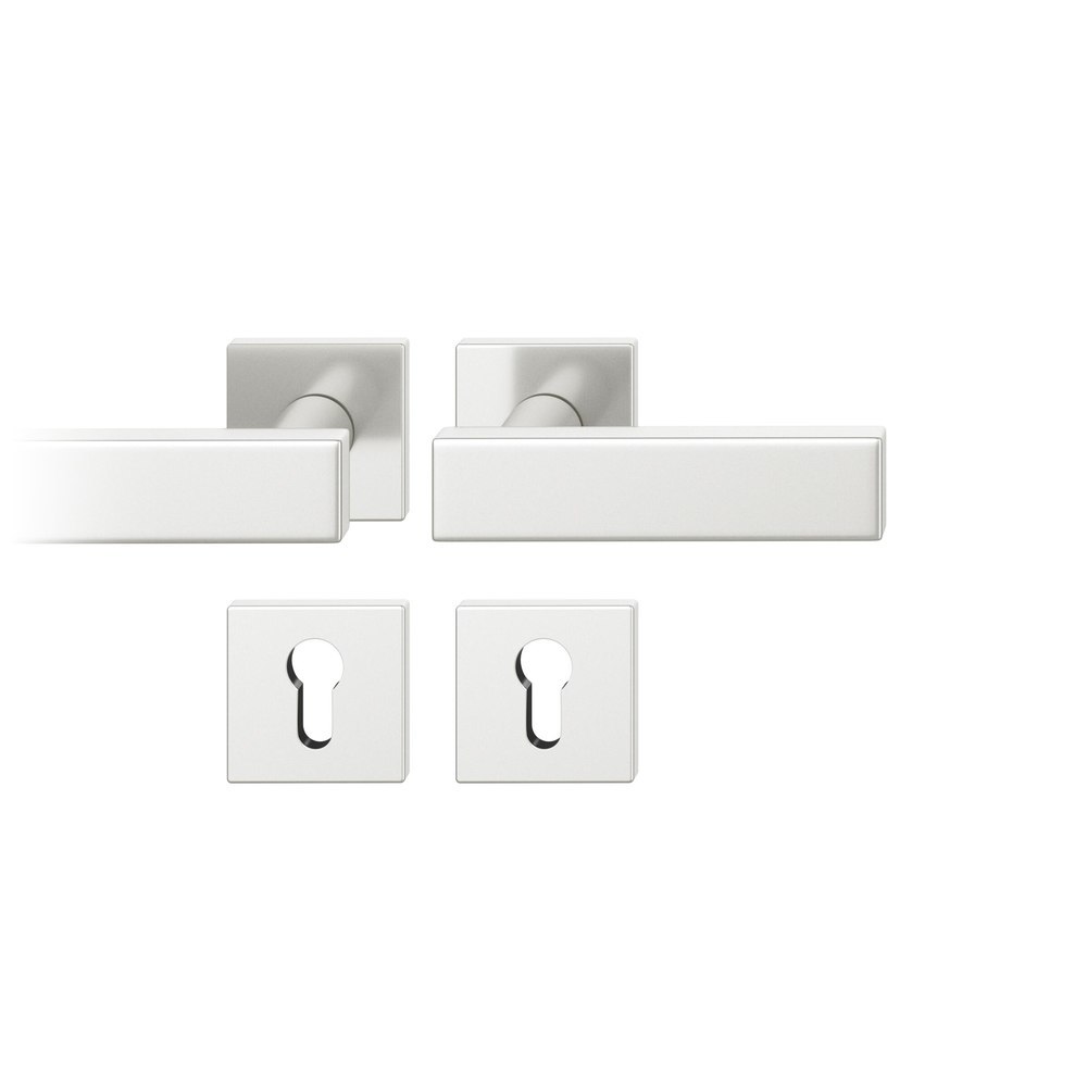 Produktinformationen "FSB Drückergarnitur 12 1003, Rosette, eckig, Profilzylinder gelocht, Vierkant 8,5mm, DIN Links-Rechts, Türstärke 39 - 58mm, mit Stütznocken, naturfarben eloxiert Adapter-Standardlager"