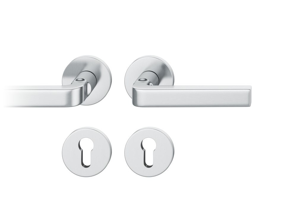 Produktinformationen "FSB Drückergarnitur 12 1004, Rosette, rund, Profilzylinder gelocht, Vierkant 8mm, DIN Links-Rechts, Türstärke 39 - 58mm, mit Stütznocken, edelstahl fein matt Adapter-Standardlager"