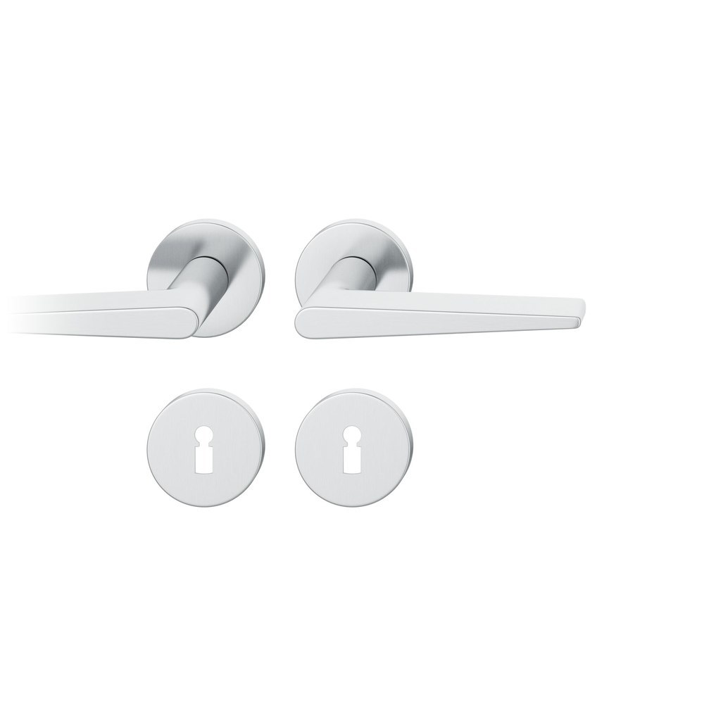 Produktinformationen "FSB Drückergarnitur 12 1005, Rosette, rund, Buntbart gelocht, Vierkant 8,5mm, DIN Links-Rechts, Türstärke 39 - 58mm, mit Stütznocken, edelstahl fein matt Adapter-Standardlager"