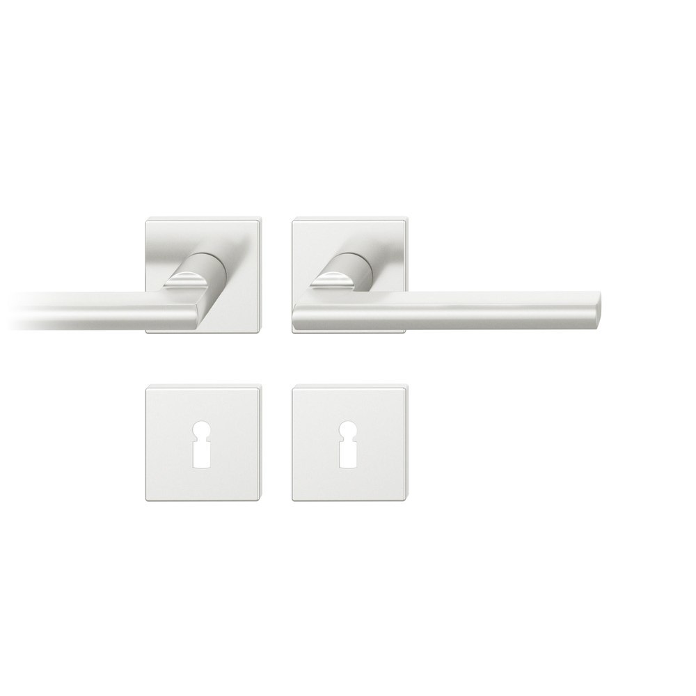 Produktinformationen "FSB Drückergarnitur 12 1035, Rosette, eckig, Buntbart gelocht, Vierkant 8mm, DIN Links-Rechts, Türstärke 39 - 58mm, mit Stütznocken, naturfarben eloxiert Adapter-Standardlager"