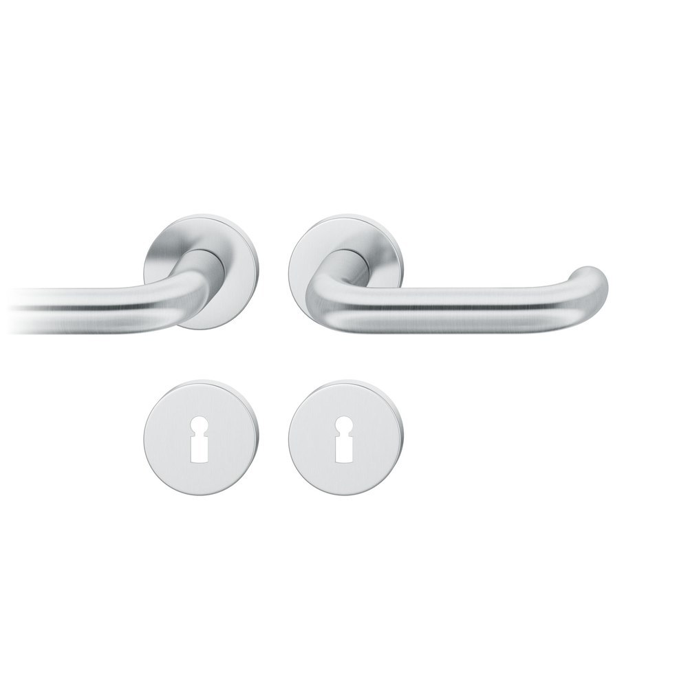 FSB Drückergarnitur 12 1146, Rosette, rund, Buntbart gelocht, Vierkant 8mm, DIN Links-Rechts, Türstärke 39 - 58mm, mit Stütznocken, edelstahl fein matt Adapter-Standardlager