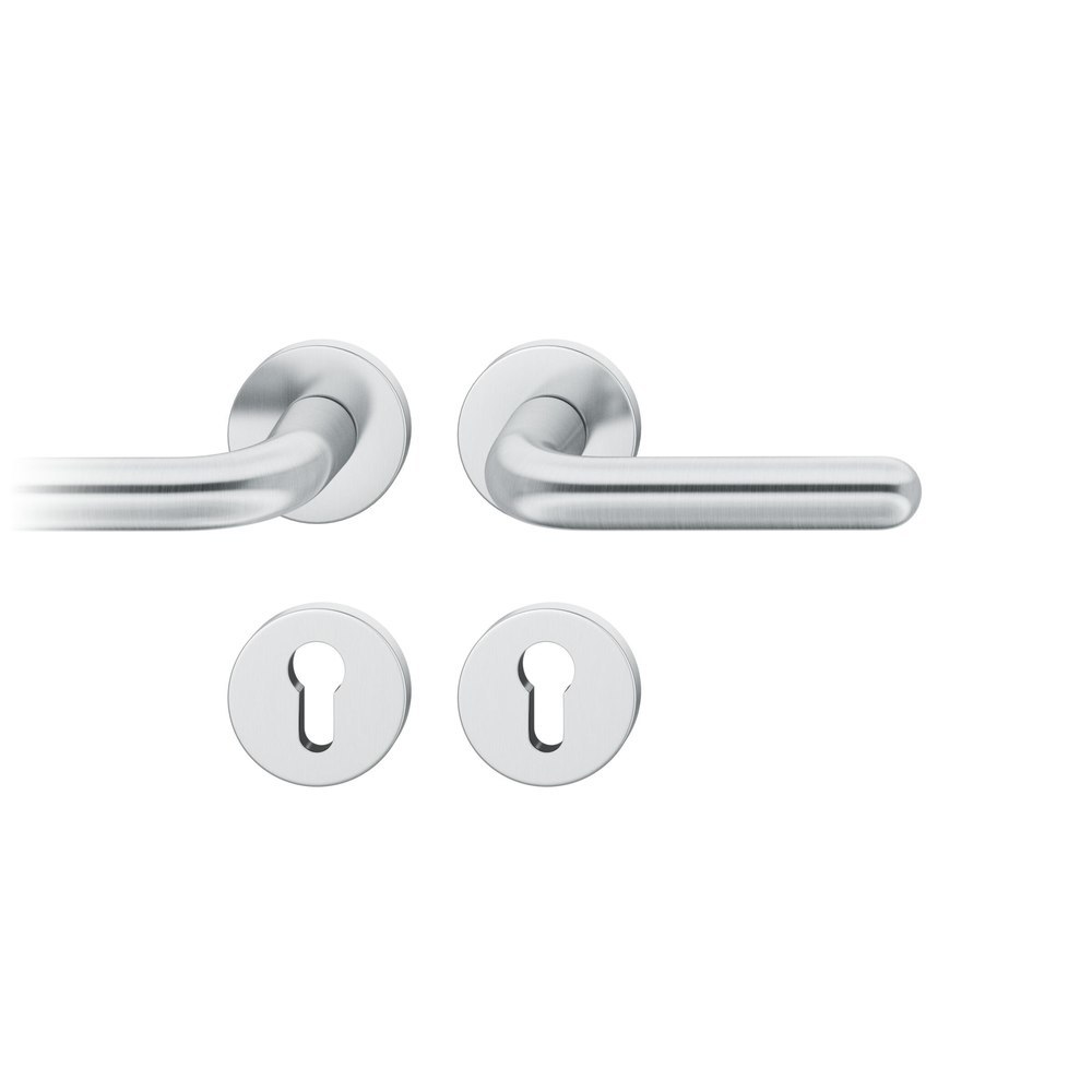 Produktinformationen "FSB Drückergarnitur 12 1147, Rosette, rund, Profilzylinder gelocht, Vierkant 8,5mm, DIN Links-Rechts, Türstärke 39 - 58mm, mit Stütznocken, edelstahl fein matt Adapter-Standardlager"