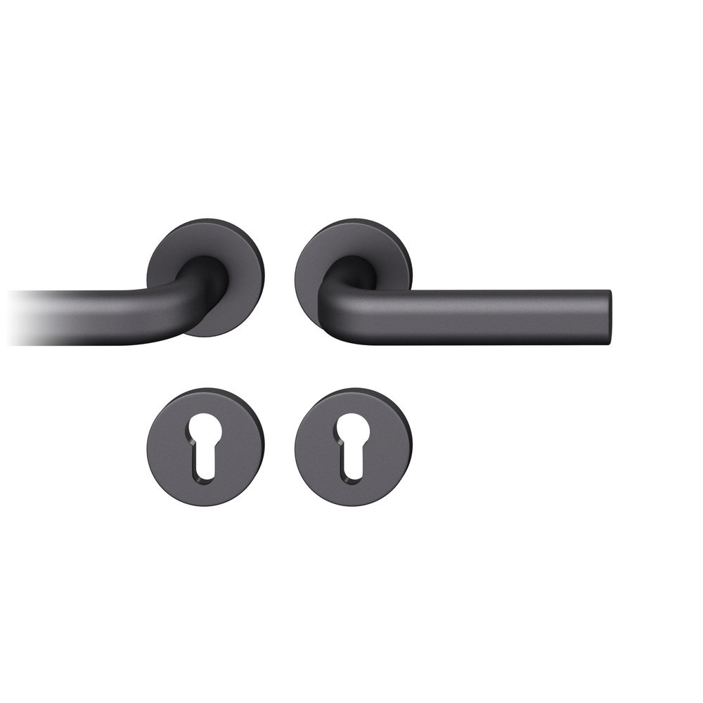 Produktinformationen "FSB Drückergarnitur 12 1242, Rosette, rund, Profilzylinder gelocht, Vierkant 8,5mm, DIN Links-Rechts, Türstärke 39 - 58mm, mit Stütznocken, schwarz gestrahlt Adapter-Standardlager"