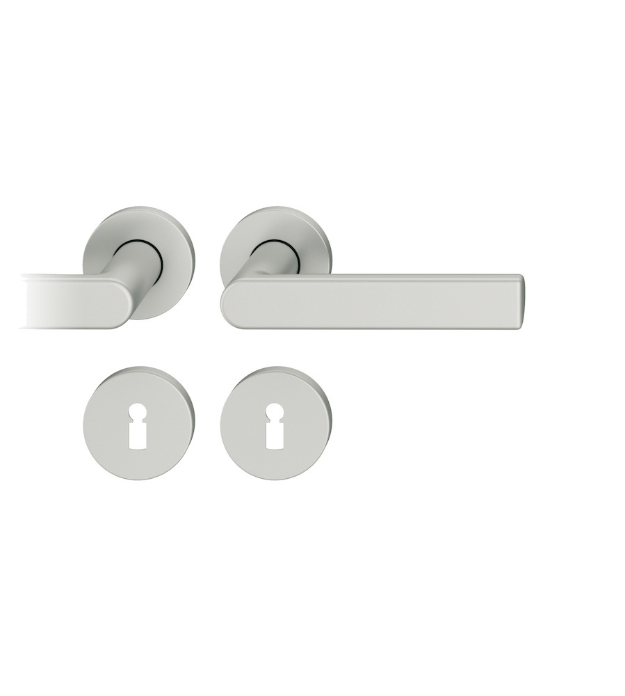 FSB Drückergarnitur 12 1244; Produkttyp: Drückergarnitur; Produkttyp (Hersteller): Drückergarnitur; Ausführung: Rosette; Befestigungsart Drückerrosette (außen): verdeckt verschraubt; Befestigungsart Drückerrosette (innen): verdeckt verschraubt; Befestigungsart Schlüsselrosette (außen): verdeckt verschraubt; Befestigungsart Schlüsselrosette (innen): verdeckt verschraubt; Befestigungstechnik: mit Stütznocken; Montageart: aufliegend; Form Drückerrosette: rund; Form Schlüsselrosette (außen): rund; Form Schlüsselrosette (innen): rund; Vierkant: 7 mm; Material: Aluminium; Material Unterkonstruktion (Griffrosette): Kunststoff-Edelstahlverbundbau; Form Türgriff (innen): Design; Form Türgriff (außen): Design; Durchmesser Schlüsselrosette: 55 mm; Länge Türgriff (innen): 140 mm; Länge Türgriff (außen): 140 mm; Höhe Türgriff (innen): 58 mm; Höhe Türgriff (außen): 58 mm; Durchmesser Drückerrosette (außen): 55 mm; Durchmesser Drückerrosette (innen): 55 mm; Höhe Drückerrosette (außen): 7 mm; Höhe Drückerrosette (innen): 7 mm; Höhe Schlüsselrosette (außen): 7 mm; Höhe Schlüsselrosette (innen): 7 mm; Lagerung: mit Rückholfeder, Adapter-Standardlager, festdrehbar; Einsatzbereich: Objekttür; Türart: Vollblatt; Türwerkstoff: Stahl, Holz; Lochung: Chubb gelocht; DIN-Richtung: DIN Links-Rechts; Farbe: silber; Farbton: naturfarben; Oberfläche: eloxiert; Material Unterkonstruktion (Schlüsselrosette): Kunststoff-Edelstahlverbundbau; Ausführung Vierkant: Stabilstift; Betätigungswinkel max.: 45 °; Design Türdrücker: gmp Architekten von Gerkan, Marg und Partner; Türstärke min.: 39 mm; Türstärke max.: 58 mm; Norm: DIN EN 1906