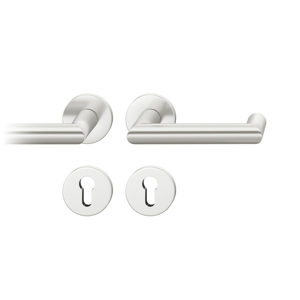 FSB Drückergarnitur 72 1016, Rosette, rund, Profilzylinder gelocht, Vierkant 8mm, DIN Links, Türstärke 39 - 48mm, mit Stütznocken, naturfarben eloxiert Ausgleichslager® 3