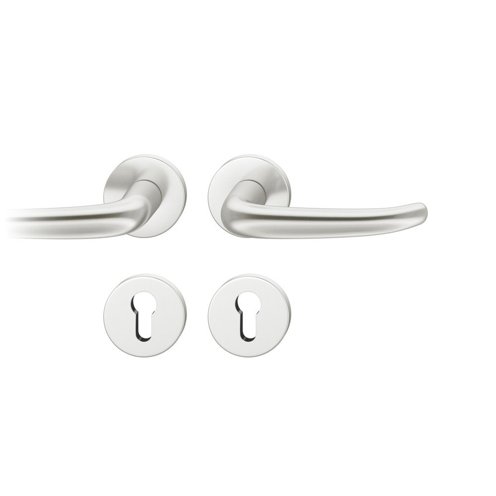 FSB Drückergarnitur 72 1023; Produkttyp: Drückergarnitur; Produkttyp (Hersteller): Drückergarnitur; Ausführung: Rosette; Befestigungsart Drückerrosette (außen): verdeckt verschraubt; Befestigungsart Drückerrosette (innen): verdeckt verschraubt; Befestigungsart Schlüsselrosette (außen): verdeckt verschraubt; Befestigungsart Schlüsselrosette (innen): verdeckt verschraubt; Befestigungstechnik: mit Stütznocken; Montageart: aufliegend; Form Drückerrosette: rund; Form Schlüsselrosette (außen): rund; Form Schlüsselrosette (innen): rund; Vierkant: 8 mm; Material: Aluminium; Material Unterkonstruktion (Griffrosette): Kunststoff-Edelstahlverbundbau; Form Türgriff (innen): gebogen; Form Türgriff (außen): gebogen; Breite Türgriff (innen): 15 mm; Durchmesser Schlüsselrosette: 55 mm; Breite Türgriff (außen): 15 mm; Länge Türgriff (innen): 135 mm; Länge Türgriff (außen): 135 mm; Höhe Türgriff (innen): 59 mm; Höhe Türgriff (außen): 59 mm; Durchmesser Drückerrosette (außen): 55 mm; Durchmesser Drückerrosette (innen): 55 mm; Höhe Drückerrosette (außen): 7 mm; Höhe Drückerrosette (innen): 7 mm; Höhe Schlüsselrosette (außen): 7 mm; Höhe Schlüsselrosette (innen): 7 mm; Lagerung: Ausgleichslager® 3, festdrehbar, mit Rückholfeder; Einsatzbereich: Objekttür; Türart: Vollblatt; Türwerkstoff: Stahl, Holz; Lochung: Profilzylinder gelocht; DIN-Richtung: DIN Links; Farbe: silber; Farbton: naturfarben; Oberfläche: eloxiert; Material Unterkonstruktion (Schlüsselrosette): Kunststoff-Edelstahlverbundbau; Betätigungswinkel max.: 35 °; Türstärke min.: 39 mm; Türstärke max.: 48 mm; Norm: DIN EN 1906; EN 1906 - Gebrauchskategorie: Klasse 4; EN 1906 - Dauerhaftigkeit: Klasse 7; EN 1906 - Türmasse: -; EN 1906 - Feuerbeständigkeit: Klasse 0; EN 1906 - Sicherheit: Klasse 1; EN 1906 - Korrosionsbeständigkeit: Klasse 5; EN 1906 - Einbruchschutz: Klasse 0; EN 1906 - Ausführungsart: Typ B; Klassifizierungsschlüssel EN 1906: 47-0150B