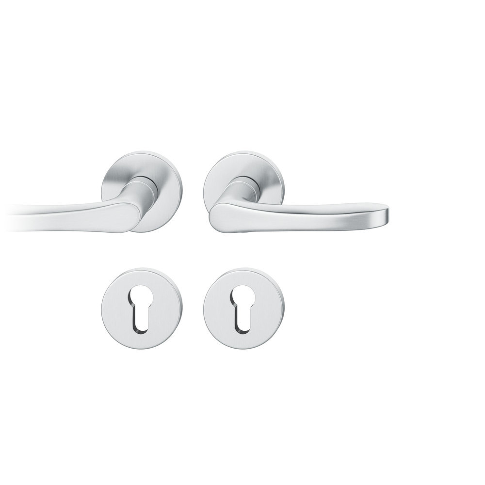 FSB Drückergarnitur 72 1106, Rosette, rund, Profilzylinder gelocht, Vierkant 8mm, DIN Links, Türstärke 39 - 48mm, mit Stütznocken, edelstahl fein matt Ausgleichslager® 3