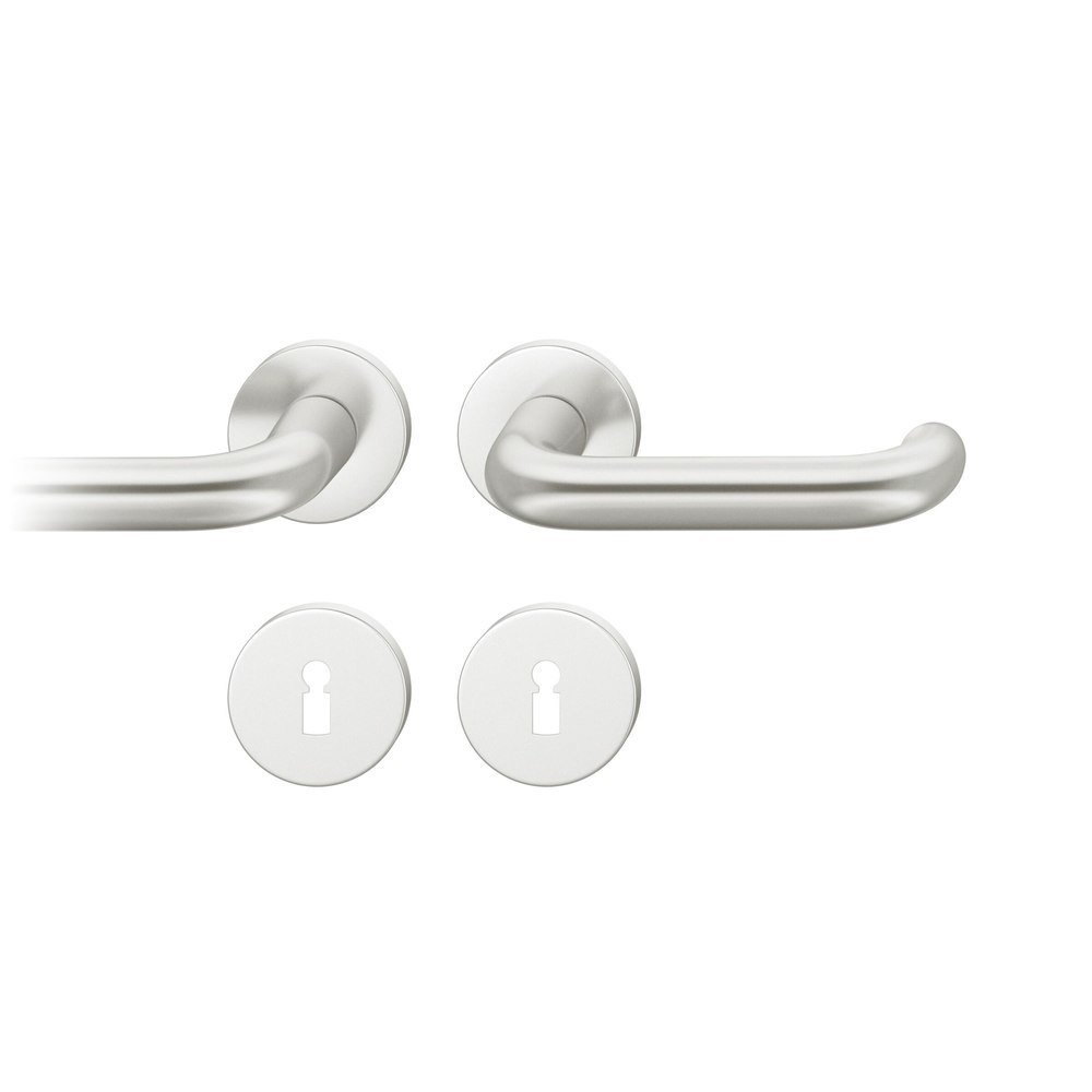 FSB Drückergarnitur 72 1146; Produkttyp: Drückergarnitur; Produkttyp (Hersteller): Drückergarnitur; Ausführung: Rosette; Befestigungsart Drückerrosette (außen): verdeckt verschraubt; Befestigungsart Drückerrosette (innen): verdeckt verschraubt; Befestigungsart Schlüsselrosette (außen): verdeckt verschraubt; Befestigungsart Schlüsselrosette (innen): verdeckt verschraubt; Befestigungstechnik: mit Stütznocken; Montageart: aufliegend; Form Drückerrosette: rund; Form Schlüsselrosette (außen): rund; Form Schlüsselrosette (innen): rund; Vierkant: 8 mm; Material: Aluminium; Material Unterkonstruktion (Griffrosette): Kunststoff-Edelstahlverbundbau; Form Türgriff (innen): U-Form; Form Türgriff (außen): U-Form; Durchmesser Türgriff (innen): 20 mm; Durchmesser Türgriff (außen): 20 mm; Durchmesser Schlüsselrosette: 55 mm; Länge Türgriff (innen): 142 mm; Länge Türgriff (außen): 142 mm; Höhe Türgriff (innen): 63 mm; Höhe Türgriff (außen): 63 mm; Durchmesser Drückerrosette (außen): 55 mm; Durchmesser Drückerrosette (innen): 55 mm; Höhe Drückerrosette (außen): 7 mm; Höhe Drückerrosette (innen): 7 mm; Höhe Schlüsselrosette (außen): 7 mm; Höhe Schlüsselrosette (innen): 7 mm; Lagerung: mit Rückholfeder, Ausgleichslager® 3, festdrehbar; Einsatzbereich: Objekttür; Türart: Vollblatt; Türwerkstoff: Holz, Stahl; Lochung: Buntbart gelocht; DIN-Richtung: DIN Links; Farbe: silber; Farbton: naturfarben; Oberfläche: eloxiert; Material Unterkonstruktion (Schlüsselrosette): Kunststoff-Edelstahlverbundbau; Betätigungswinkel max.: 35 °; Türstärke min.: 39 mm; Türstärke max.: 48 mm; Norm: DIN EN 1906; EN 1906 - Gebrauchskategorie: Klasse 4; EN 1906 - Dauerhaftigkeit: Klasse 7; EN 1906 - Türmasse: -; EN 1906 - Feuerbeständigkeit: Klasse 0; EN 1906 - Sicherheit: Klasse 1; EN 1906 - Korrosionsbeständigkeit: Klasse 5; EN 1906 - Einbruchschutz: Klasse 0; EN 1906 - Ausführungsart: Typ B; Klassifizierungsschlüssel EN 1906: 47-0150B