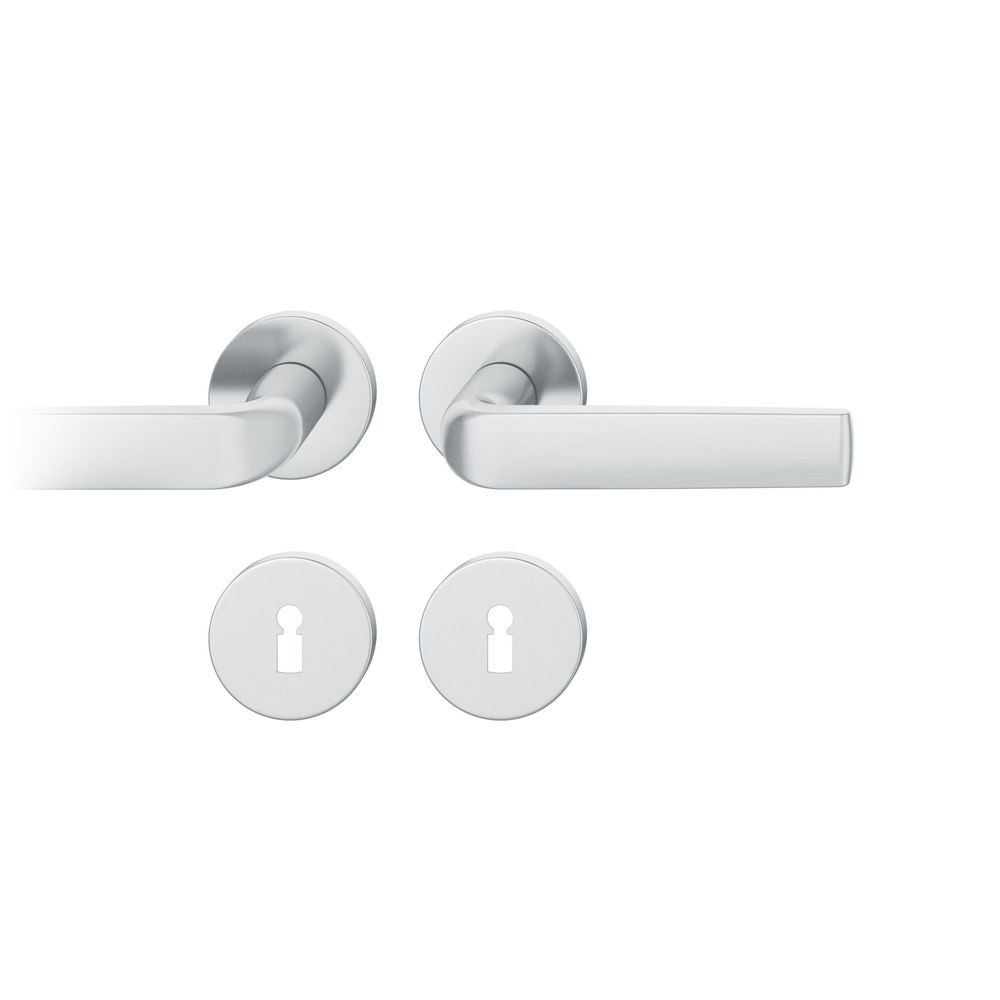 FSB Drückergarnitur 72 1267, Rosette, rund, Buntbart gelocht, Vierkant 8mm, DIN Links, Türstärke 39 - 48mm, mit Stütznocken, edelstahl fein matt Ausgleichslager® 3