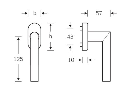 FSB Drehkipp Fenstergriff, Modellnummer: 34 1076, Vierkant: 7 mm, DIN-Richtung: DIN Links-Rechts, Material: aluminium, Farbton: naturfarbig, Oberfläche: eloxiert, Nockendurchmesser: 10 mm, Befestigungstechnik: mit Stütznocken, Befestigungsart: verdeckt verschraubt, Befestigungsabstand: 43 mm, Griffform: Gehrung, Grifflänge: 125 mm, Griffhöhe: 57 mm, Sockelausführung: mit ovaler schmaler Rosette, Sockelbreite: 27 mm, Sockelhöhe: 62 mm, Sockelstärke: 10 mm, Rastung: 90°, mit Kugelrastung, Norm: DIN EN 13126-3, DIN 18267, Fensterwerkstoff: aluminium, Holz, Kunststoff, Anwendung: für nach innen öffnende Fenster und Fenstertüren, Prüfung: RAL-GZ 607/9, Lieferung: ohne Schrauben, mit Vierkantstift