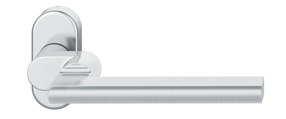 Produktinformationen "FSB Halbgarnitur 06 1035, ohne Schlüsselrosette, oval, Vierkant 9mm, DIN Links-Rechts, ohne Stütznocken, grau, edelstahl fein matt, Hochhaltefeder B"