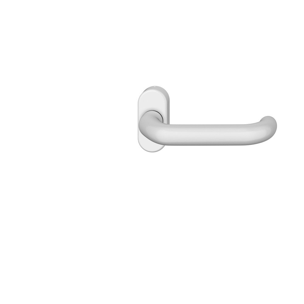 •    Aluminium-Türgriff, gekröpft, auf ovaler Rosette, 70 x 32,5 mm