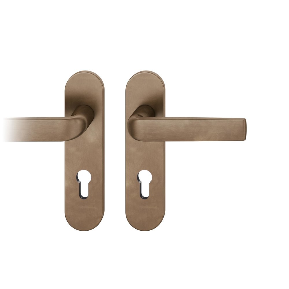 Produktinformationen "FSB für Feuerschutz Drückergarnitur 76 1267, Kurzschild, oval, Profilzylinder gelocht, Entfernung 72mm, Vierkant 9mm, DIN Rechts, Türstärke 39 - 48mm, mit Stütznocken, dunkelbronze patiniert gewachst, Ausgleichslager® 3"