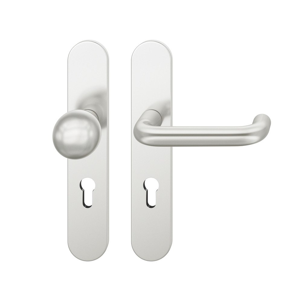 FSB für Feuerschutz Wechselgarnitur 79 1070, Langschild, oval, Profilzylinder gelocht, Entfernung 72mm, Vierkant 9mm, DIN Links, Türstärke 39 - 48mm, mit Stütznocken, naturfarben eloxiert, Ausgleichslager® 3