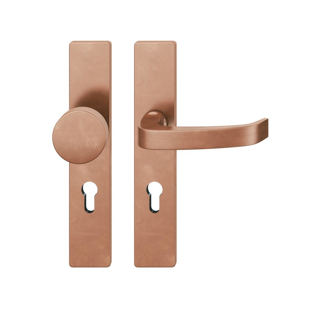 Produktinformationen "FSB für Feuerschutz Wechselgarnitur 79 1164, Langschild, eckig, Profilzylinder gelocht, Entfernung 72mm, Vierkant 9mm, DIN Links, Türstärke 39 - 48mm, mit Stütznocken, hellbronze patiniert gewachst, Ausgleichslager® 3"