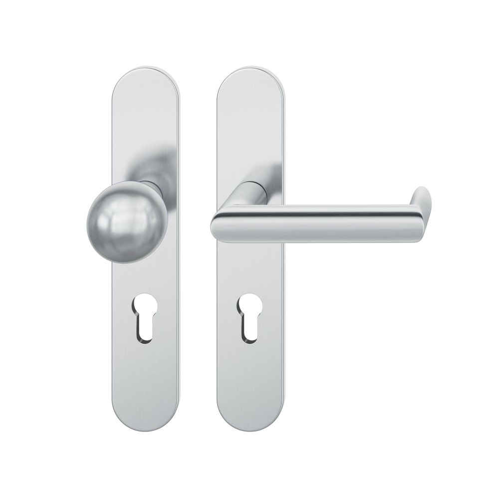 Produktinformationen "FSB für Feuerschutz Wechselgarnitur 79 1178, Langschild, oval, Profilzylinder gelocht, Entfernung 72mm, Vierkant 9mm, DIN Links, Türstärke 39 - 48mm, mit Stütznocken, edelstahl fein matt, Ausgleichslager® 3"