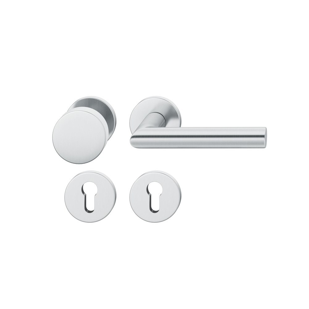 Produktinformationen "FSB Wechselgarnitur 76 1076, Rosette, rund, Profilzylinder gelocht, Vierkant 9mm, DIN Rechts, TS 39 - 48mm, mit Stütznocken, grau, edelstahl fein matt, Knopf 0829"