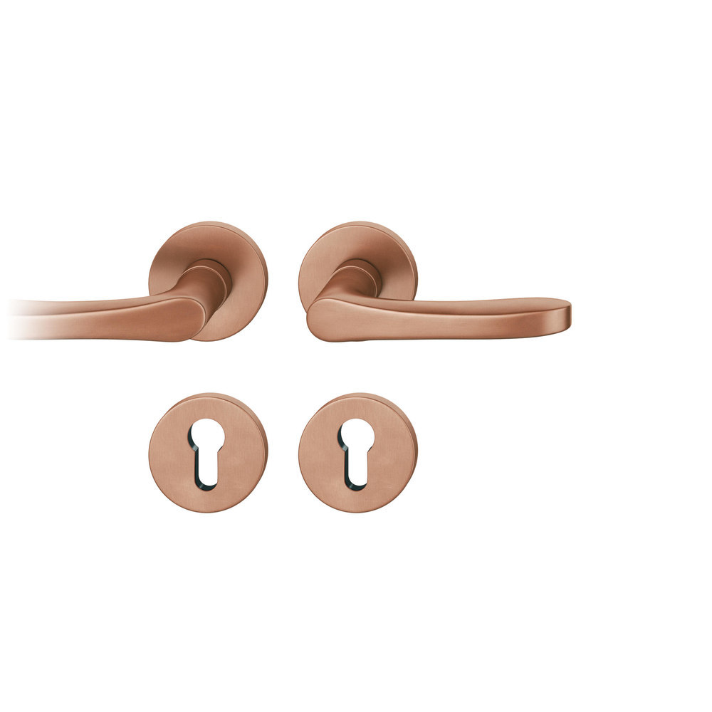 FSB Drückergarnitur 76 1106; Produkttyp: Drückergarnitur; Produkttyp (Hersteller): Drückergarnitur; Ausführung: Rosette; Befestigungsart Drückerrosette (außen): verdeckt verschraubt; Befestigungsart Drückerrosette (innen): verdeckt verschraubt; Befestigungsart Schlüsselrosette (außen): verdeckt verschraubt; Befestigungsart Schlüsselrosette (innen): verdeckt verschraubt; Befestigungstechnik: mit Stütznocken; Montageart: aufliegend; Form Drückerrosette: rund; Form Schlüsselrosette (außen): rund; Form Schlüsselrosette (innen): rund; Vierkant: 9 mm; Material: Bronze; Material Unterkonstruktion (Griffrosette): Kunststoff-Edelstahlverbundbau; Form Türgriff (innen): gebogen; Form Türgriff (außen): gebogen; Durchmesser Schlüsselrosette: 55 mm; Länge Türgriff (innen): 119 mm; Länge Türgriff (außen): 119 mm; Höhe Türgriff (innen): 61 mm; Höhe Türgriff (außen): 61 mm; Durchmesser Drückerrosette (außen): 55 mm; Durchmesser Drückerrosette (innen): 55 mm; Höhe Drückerrosette (außen): 7 mm; Höhe Drückerrosette (innen): 7 mm; Höhe Schlüsselrosette (außen): 7 mm; Höhe Schlüsselrosette (innen): 7 mm; Lagerung: Ausgleichslager® 3, festdrehbar, mit Rückholfeder; Einsatzbereich: Objekttür; Türart: Vollblatt; Türwerkstoff: Holz, Stahl; Lochung: Profilzylinder gelocht; DIN-Richtung: DIN Rechts; Farbe: braun; Farbton: hellbronze; Oberfläche: patiniert gewachst; Material Unterkonstruktion (Schlüsselrosette): Kunststoff-Edelstahlverbundbau; Betätigungswinkel max.: 35 °; Design Türdrücker: Christoph Mäckler; Türstärke min.: 39 mm; Türstärke max.: 48 mm; Norm: DIN 18273, DIN EN 1906; Zulassung: für Feuerschutz, für Rauchschutz; EN 1906 - Gebrauchskategorie: Klasse 4; EN 1906 - Dauerhaftigkeit: Klasse 7; EN 1906 - Türmasse: -; EN 1906 - Feuerbeständigkeit: Klasse B; EN 1906 - Sicherheit: Klasse 1; EN 1906 - Korrosionsbeständigkeit: Klasse 5; EN 1906 - Einbruchschutz: Klasse 0; EN 1906 - Ausführungsart: Typ B; Klassifizierungsschlüssel EN 1906: 47-B150B