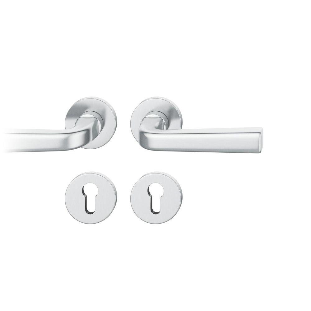 Produktinformationen "FSB für Feuerschutz Drückergarnitur 76 1254, Rosette, rund, Profilzylinder gelocht, Vierkant 9mm, DIN Rechts, Türstärke 39 - 48mm, mit Stütznocken, edelstahl fein matt Ausgleichslager® 3"