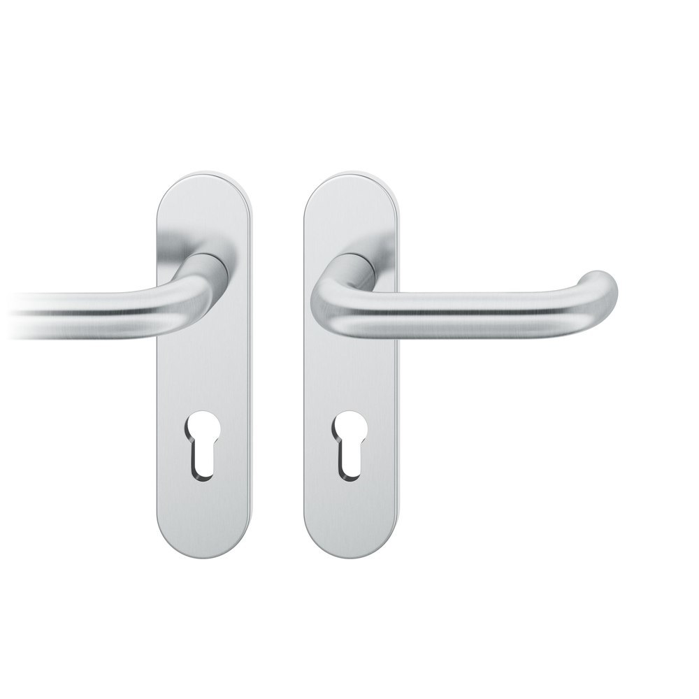 FSB für Feuerschutz Drückergarnitur 79 1146, Kurzschild, oval, Profilzylinder gelocht, Entfernung 72mm, Vierkant 9mm, DIN Links-Rechts, Türstärke 39 - 48mm, mit Stütznocken, edelstahl fein matt, Ausgleichslager® 3