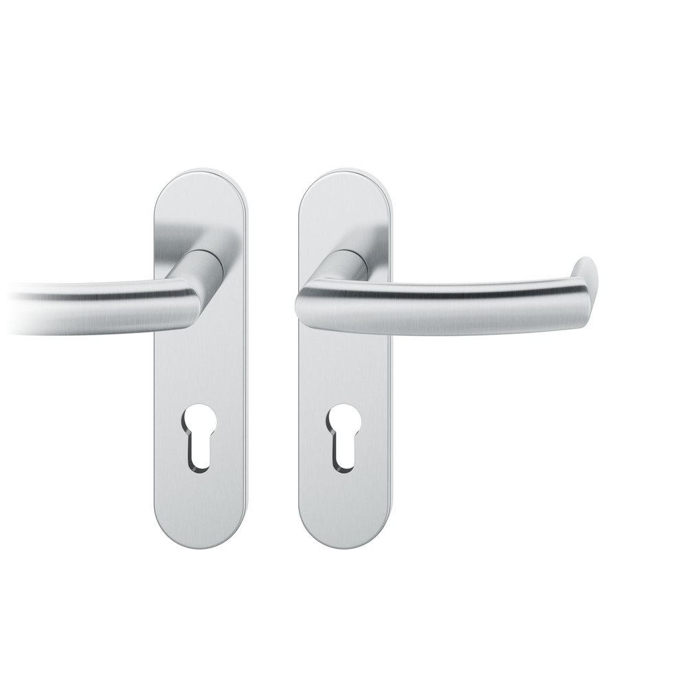 Produktinformationen "FSB für Feuerschutz Drückergarnitur 79 1177, Kurzschild, oval, Profilzylinder gelocht, Entfernung 72mm, Vierkant 9mm, DIN Links, Türstärke 39 - 48mm, mit Stütznocken, edelstahl fein matt, Ausgleichslager® 3"