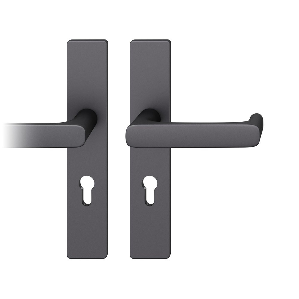 FS-AGL3-Drückergarnitur links, 9mm PZ 72mm eckiges Langschild, max. 35°. TS 39-48mm, Alu schwarz gestrahlt