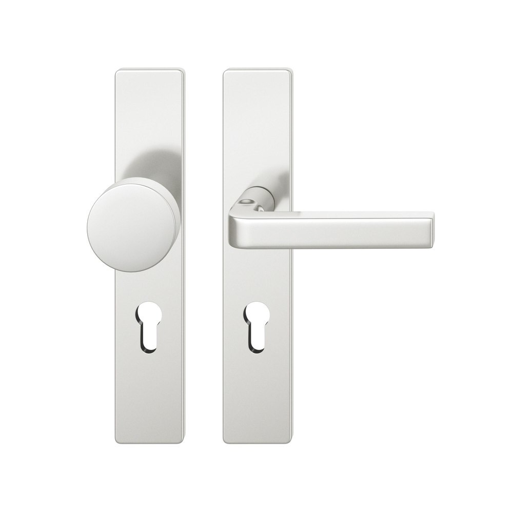 Produktinformationen "FSB für Feuerschutz Wechselgarnitur 76 1004, Langschild, eckig, Profilzylinder gelocht, Entfernung 72mm, Vierkant 9mm, DIN Rechts, Türstärke 39 - 48mm, mit Stütznocken, naturfarben eloxiert, Ausgleichslager® 3"