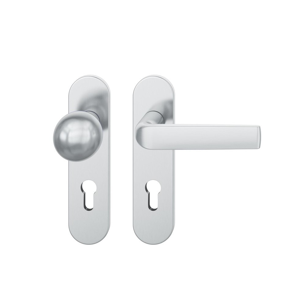 Produktinformationen "FSB für Feuerschutz Wechselgarnitur 76 1267, Kurzschild, oval, Profilzylinder gelocht, Entfernung 72mm, Vierkant 9mm, DIN Links, Türstärke 39 - 48mm, mit Stütznocken, edelstahl fein matt, Ausgleichslager® 3"