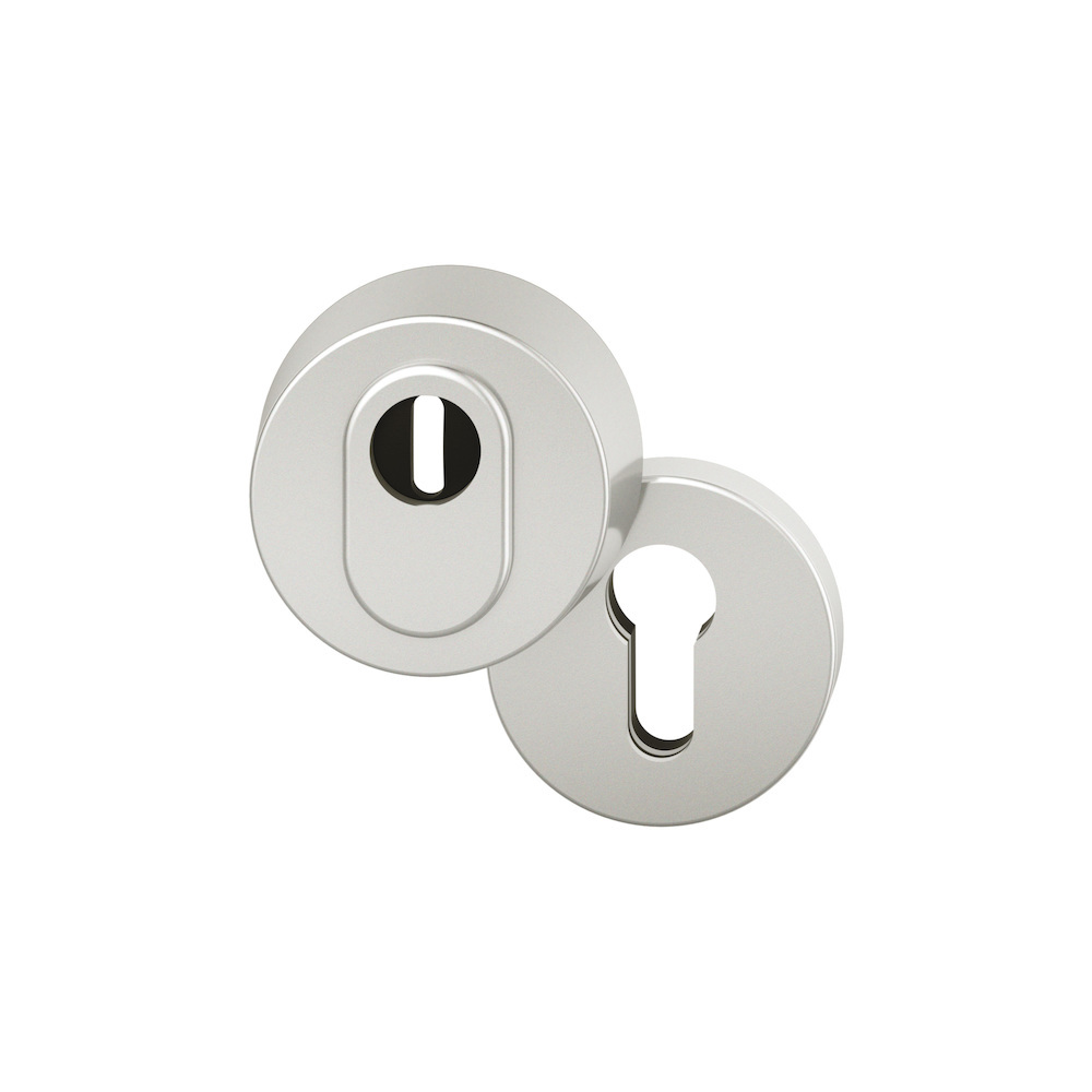 Produktinformationen "FSB Schutzrosetten-Satz 73 7393, aufliegend, rund, 15mm, mit Zylinderabdeckung/Profilzylinder gelocht, ähnlich RAL 9016 farbig kunststoffbeschichtet, Türstärke 61 - 71mm, Durchmesser Rosette (außen) 62mm"