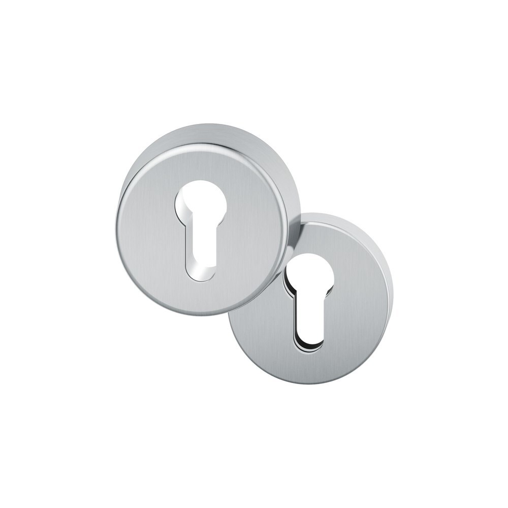 Produktinformationen "FSB Schutzrosetten-Satz 73 7395, aufliegend, rund, 14,5mm, ES 1, mit Zylinderabdeckung/Profilzylinder gelocht, edelstahl fein matt, Türstärke 67 - 69mm, Durchmesser Rosette (außen) 62,3mm"