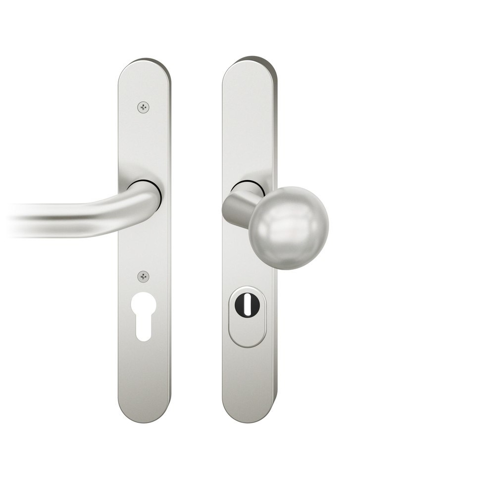 FSB Sicherheits-Wechselgarnitur 73 7331; Produkttyp: Sicherheits-Wechselgarnitur; Produkttyp (Hersteller): Wechselgarnitur; Ausführung: Langschild; Form: oval; Material: Aluminium; Form Türgriff (innen): gekröpft,U-Form; Form Türgriff (außen): Kugelknopf,gekröpft; Länge Türgriff (innen): 156 mm; Höhe Türgriff (innen): 55 mm; Höhe Türgriff (außen): 84 mm; Durchmesser Türgriff (außen): 50 mm; Einsatzbereich: Haustür; Türart: Rohrrahmen; Türwerkstoff: Aluminium,Kunststoff; Zylinderabdeckung: mit Zylinderabdeckung; DIN-Richtung: DIN Links-Rechts; Widerstandsklasse nach DIN 18257: ES 1; Vierkant: 8 mm; Entfernung: 72 mm; Lochung: Profilzylinder gelocht; Ausführung Vierkant: Vierkantvollstift; Farbe: silberfarben; Farbton: naturfarben; Oberfläche: eloxiert; Schildlänge außen: 245 mm; Schildlänge innen: 245 mm; Schildbreite außen: 35 mm; Schildbreite innen: 35 mm; Schildstärke innen: 7 mm; Schildstärke außen: 14 mm; Zylinderüberstand min.: 8 mm; Zylinderüberstand max.: 15 mm; Türstärke min.: 40 mm; Türstärke max.: 42 mm; Norm: DIN EN 1906,DIN 18257