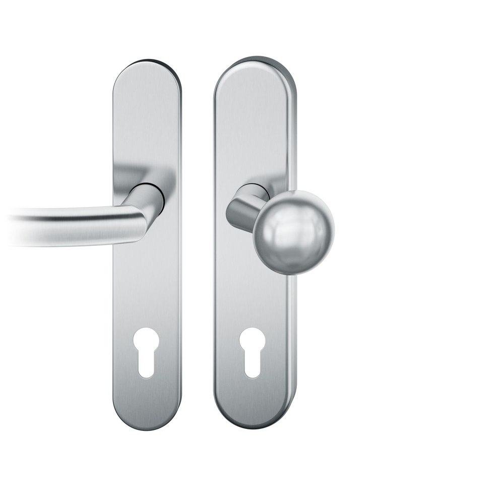 Produktinformationen "FSB Vollblatt Sicherheits-Wechselgarnitur 73 7378,Langschild,ES 1,ohne Zylinderabdeckung 92/10,DIN Links-Rechts,edelstahl fein matt,Türstärke67-69,Kugelknopf gekröpft/gebogen"