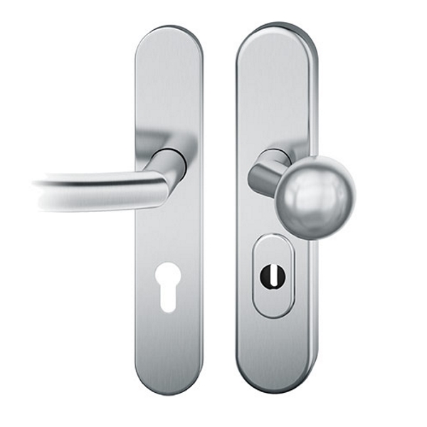 Der FSB 7378 Schutzgarnitur-Türgriff ist mit dem Abstand 72 mm oder 92 mm erhätlich. Der mitgelieferte Vierkantstift ist, je nach gewähltem Abstand, 8 mm bzw. 10 mm stark.