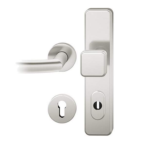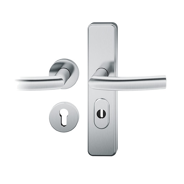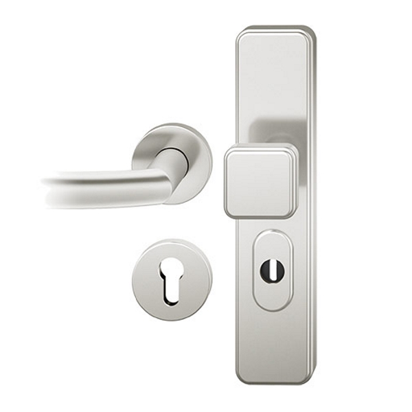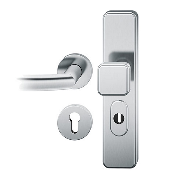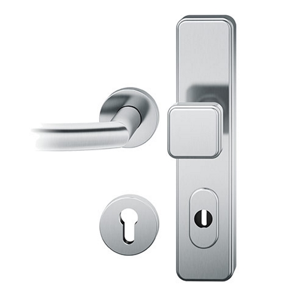 Der FSB 7381 Türgriff ist als Schutzgarnitur konzipiert. Die Schutzgarnitur ist wahlweise in Edelstahl oder Aluminium erhältlich. Dank des Zylinderziehschutzes eignet sich der FSB 7381 besonders zum Einsatz an Haus- und Wohnungseingangstüren und entspricht der Schutzklasse 2. Der Zylinderziehschutz ist für Zylinderüberstände von 8-15 mm ausgelegt.