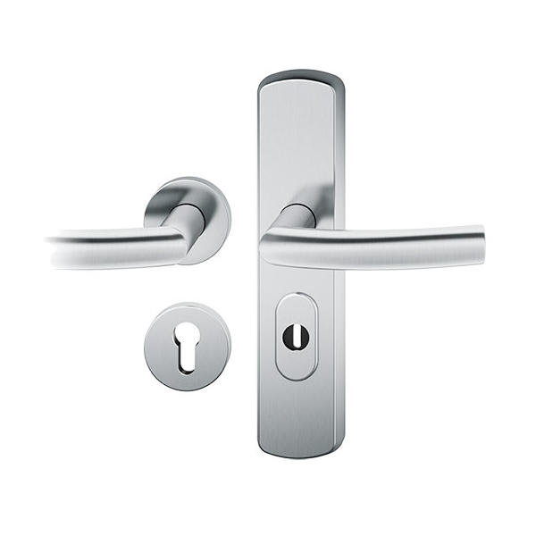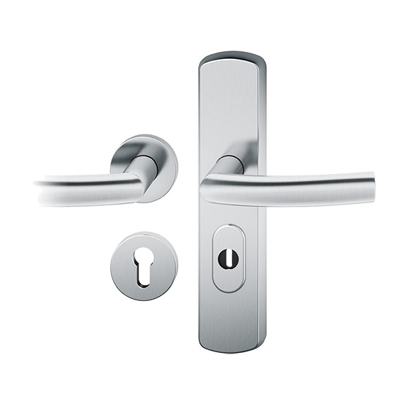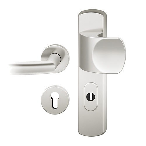 Der FSB 7385 Türgriff ist als Schutzgarnitur konzipiert. Die Schutzgarnitur ist wahlweise in Edelstahl oder Aluminium erhältlich. Dank des Zylinderziehschutzes eignet sich der FSB 7385 besonders zum Einsatz an Wohnungseingangs- und Hauseingangstüren und entspricht der Schutzklasse 2. Der Zylinderziehschutz ist für Zylinderüberstände von 8-15 mm ausgelegt.