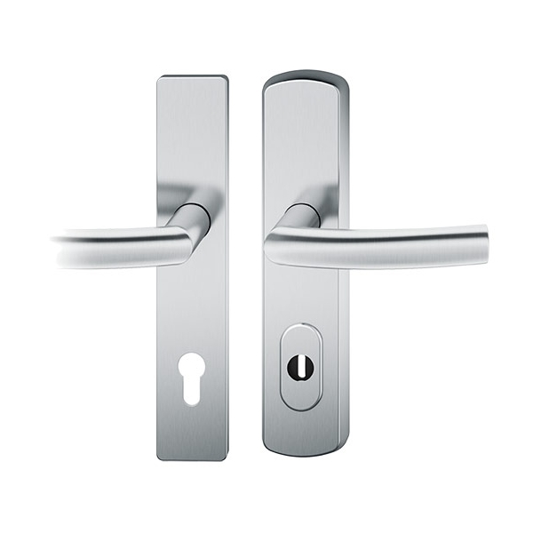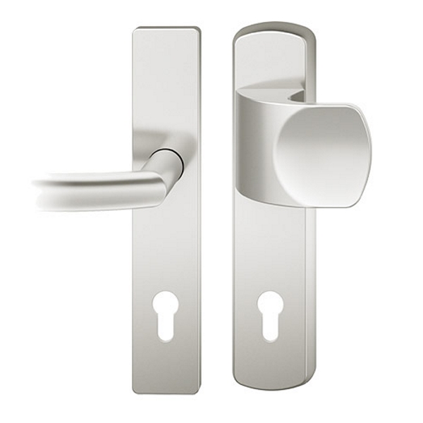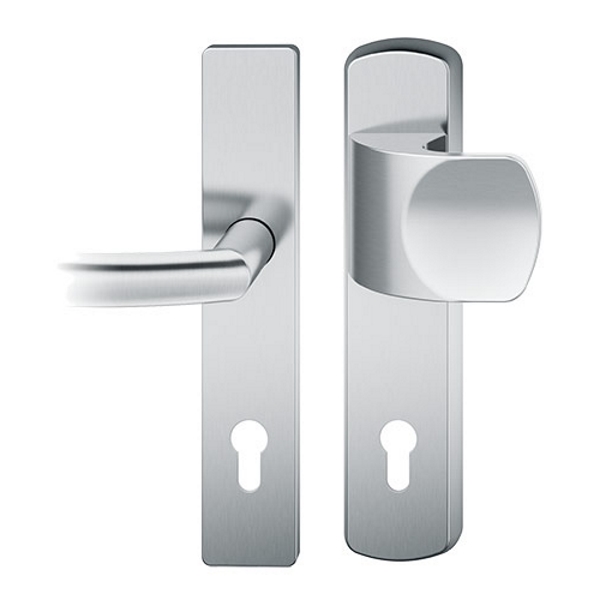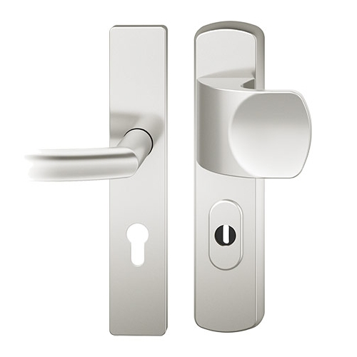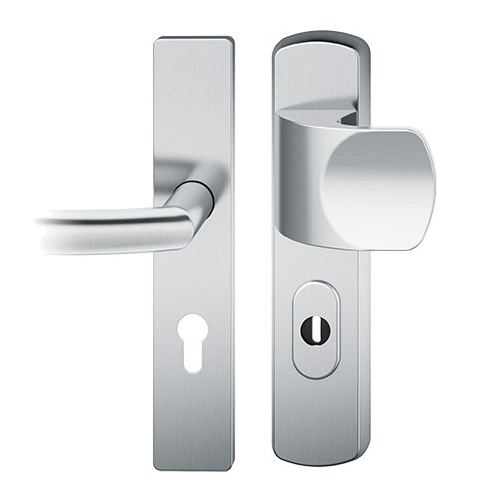 Der FSB 7385 Türgriff ist als Schutzgarnitur konzipiert. Die Schutzgarnitur ist wahlweise in Edelstahl oder Aluminium erhältlich. Dank des Zylinderziehschutzes eignet sich der FSB 7385 besonders zum Einsatz an Wohnungseingangs- und Hauseingangstüren und entspricht der Schutzklasse 2. Der Zylinderziehschutz ist für Zylinderüberstände von 8-15 mm ausgelegt.