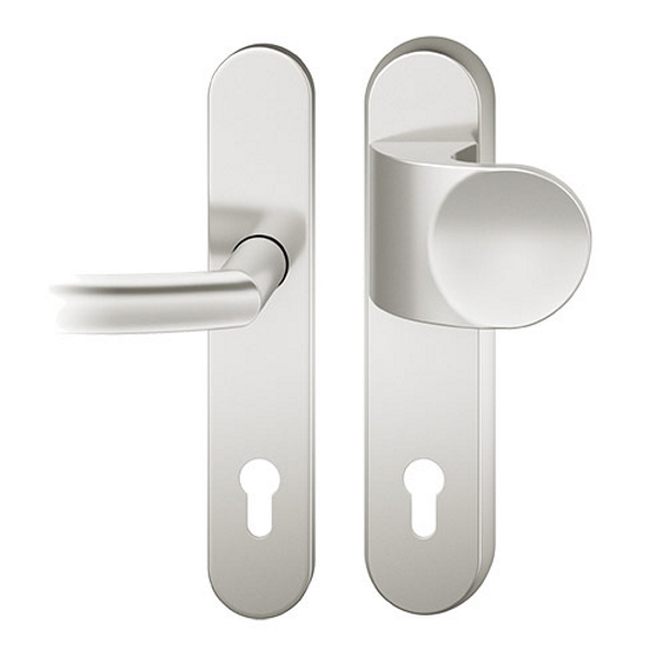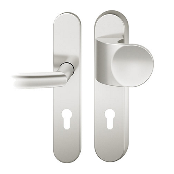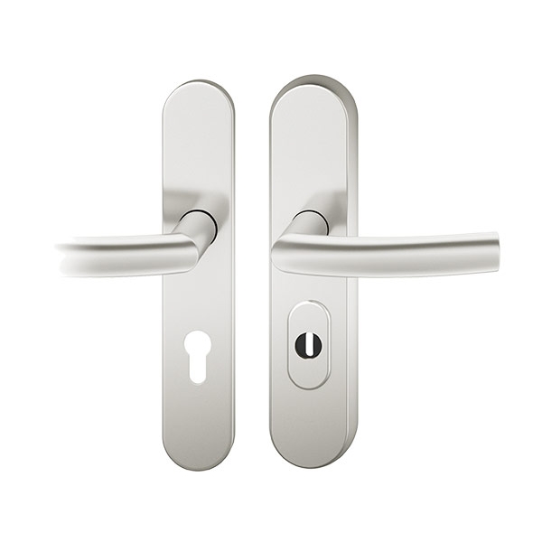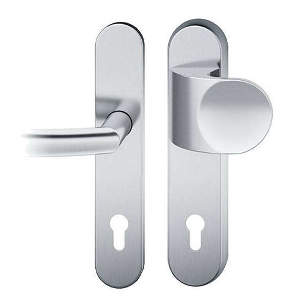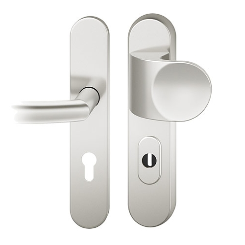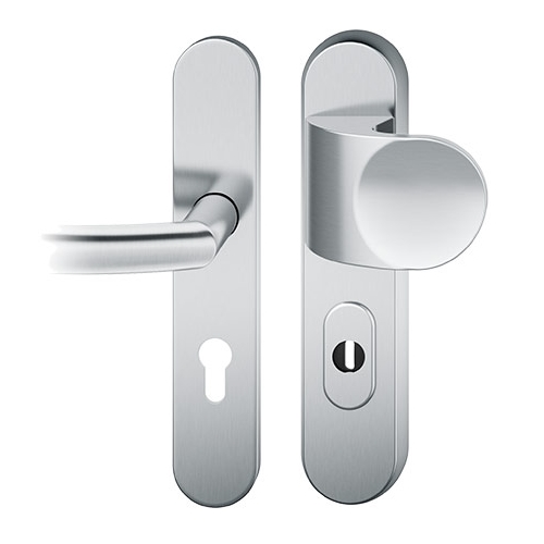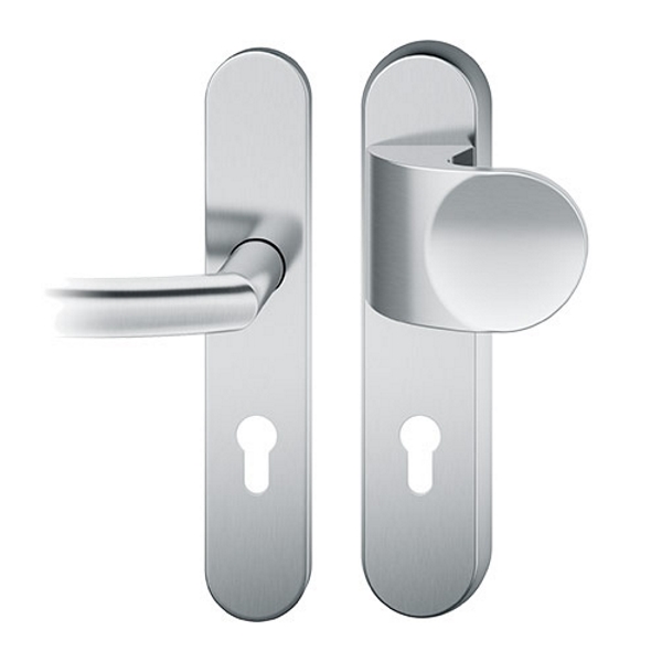 Der FSB 7386 Türgriff ist als Schutzgarnitur konzipiert. Die Schutzgarnitur ist wahlweise in Edelstahl oder Aluminium erhältlich. Dank des Zylinderziehschutzes eignet sich der FSB 7386 besonders zum Einsatz an Wohnungseingangs- und Hauseingangstüren und entspricht der Schutzklasse 2. Der Zylinderziehschutz ist für Zylinderüberstände von 8-15 mm ausgelegt.