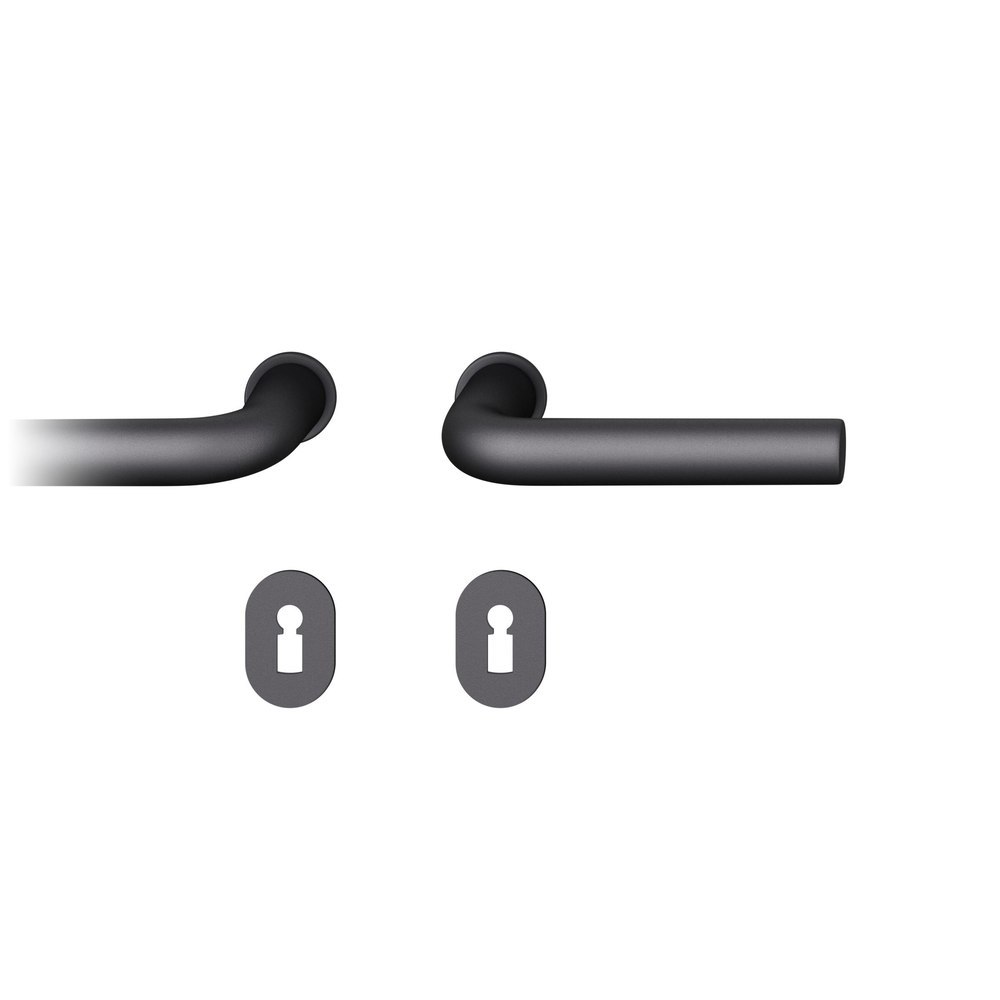 Produktinformationen "FSB Drückergarnitur 15 1075, Rosette, rund, Buntbart gelocht, Vierkant 7mm, DIN Links-Rechts, Türstärke 39 - 48mm, ohne Stütznocken, schwarz gestrahlt"