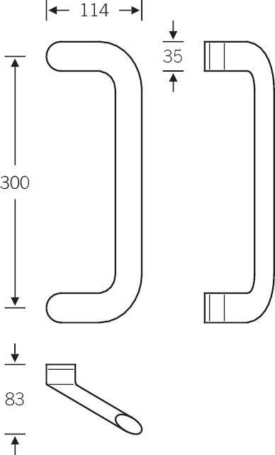 FSB Haustür Stoßgriff, Ausführung: gekröpft, halbgebogen, Modellnummer: 66 6533, Befestigungsabstand: 300 mm, Griffdicke: 35 mm, Grifflänge: 335 mm, Griffbreite: 114 mm, Grifftiefe: 83 mm, Material: edelstahl, Farbton: edelstahl, Oberfläche: fein matt, Befestigungsart: verdeckt verschraubt, DIN-Richtung: DIN Links-Rechts, Form: oval, Türwerkstoff: aluminium, Holz, Kunststoff, stahl