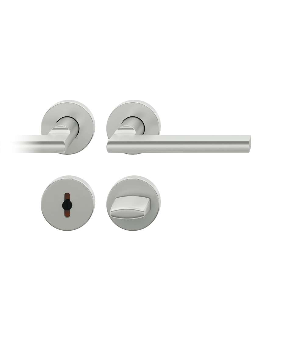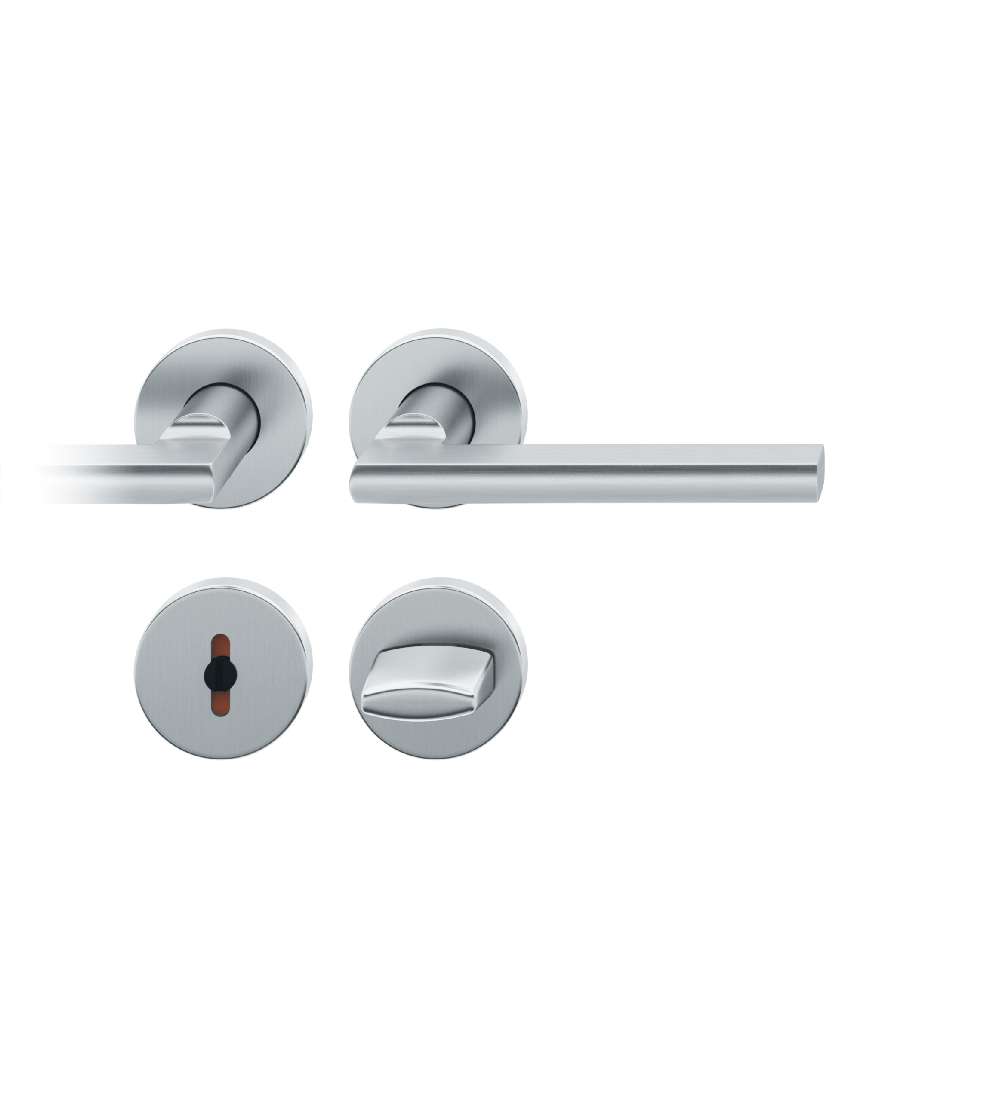 Die 1035er Tür-Komplettgarnitur von FSB ist eine, an das klassische Vorbild angelehnte, Neuentwicklung. Die beidseitig abgeflachte Handhabe geht im Gehrungsschnitt in einen runden Türdrückerhals über. Die Grifflänge beträgt bei diesem Modell ca. 137 mm. Die 1035er ist als Drücker-, Bad/WC- und Wechselgarnitur in den Werkstoffen Aluminium oder Edelstahl verfügbar.