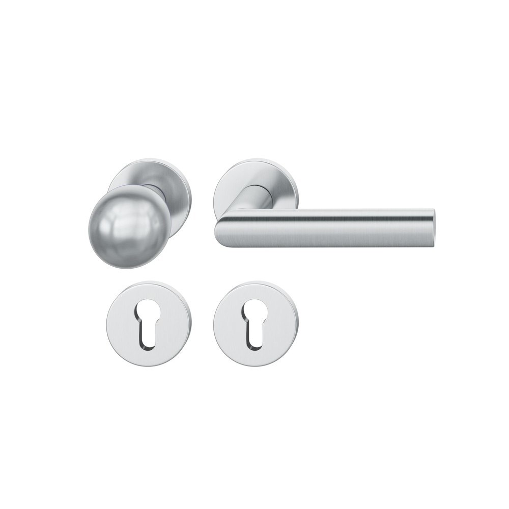 Produktinformationen "FSB Wechselgarnitur 72 1108, Ausführung Türgriff (außen) fest, Rosette, rund, Profilzylinder gelocht, Vierkant 8mm, DIN Links, Türstärke 39 - 48mm, mit Stütznocken, edelstahl fein matt Ausgleichslager® 3"