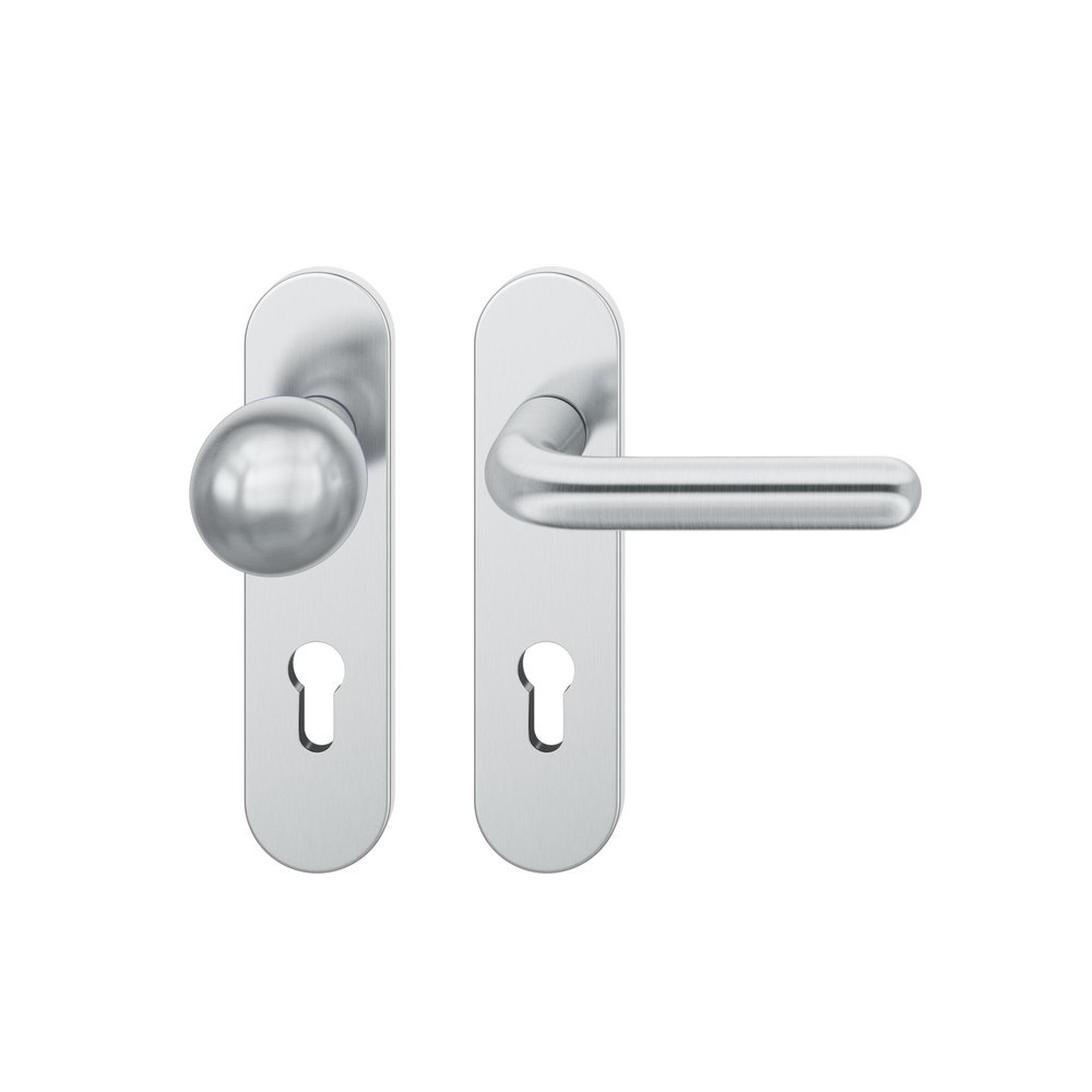 Produktinformationen "FSB Wechselgarnitur 72 1147, Kurzschild, oval, Profilzylinder gelocht, Entfernung 72mm, Vierkant 8mm, DIN Links, Türstärke 39 - 48mm, mit Stütznocken, edelstahl fein matt, Ausgleichslager® 3"
