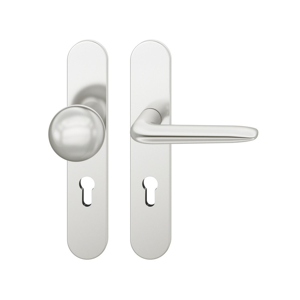 FSB Wechselgarnitur 72 1292, Langschild oval, Profilzylinder gelocht, Entfernung 72mm, Vierkant 8, DIN Rechts, Türstärke 39 - 48mm, mit Stütznocken, naturfarben eloxiert, Ausgleichslager® 3