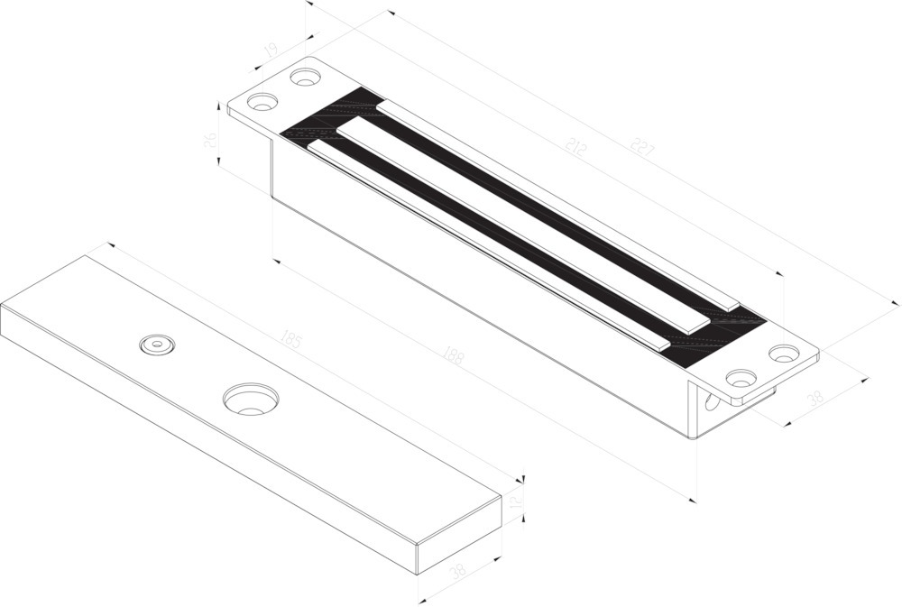 effeff, Objekttür-Haftmagnet, Ausführung: elektrisch, mit Gegenplatte, mit Verriegelungssensor, DIN-Richtung: DIN Links-Rechts, Modellnummer: MAG03000STM, Material: Edelstahl, Farbton: edelstahl, Oberfläche: matt, Befestigungsart: zum Anschrauben,Betriebsspannung min. : 12V,Betriebsspannung max. : 24V, Stromart Betriebsspannung: DC,Nennstromaufnahme bei 12 V DC : 500mA,Nennstromaufnahme bei 24 V DC : 250mA, Haltekraft: 3000 N, Montageart: Aufputz, Länge: 227 mm, Breite: 38 mm, Tiefe: 26 mm,Schraublochabstand : 19mm, Funktion: Normalfunktion, Türflügelanzahl: einflügelig, Anwendung: für Türen