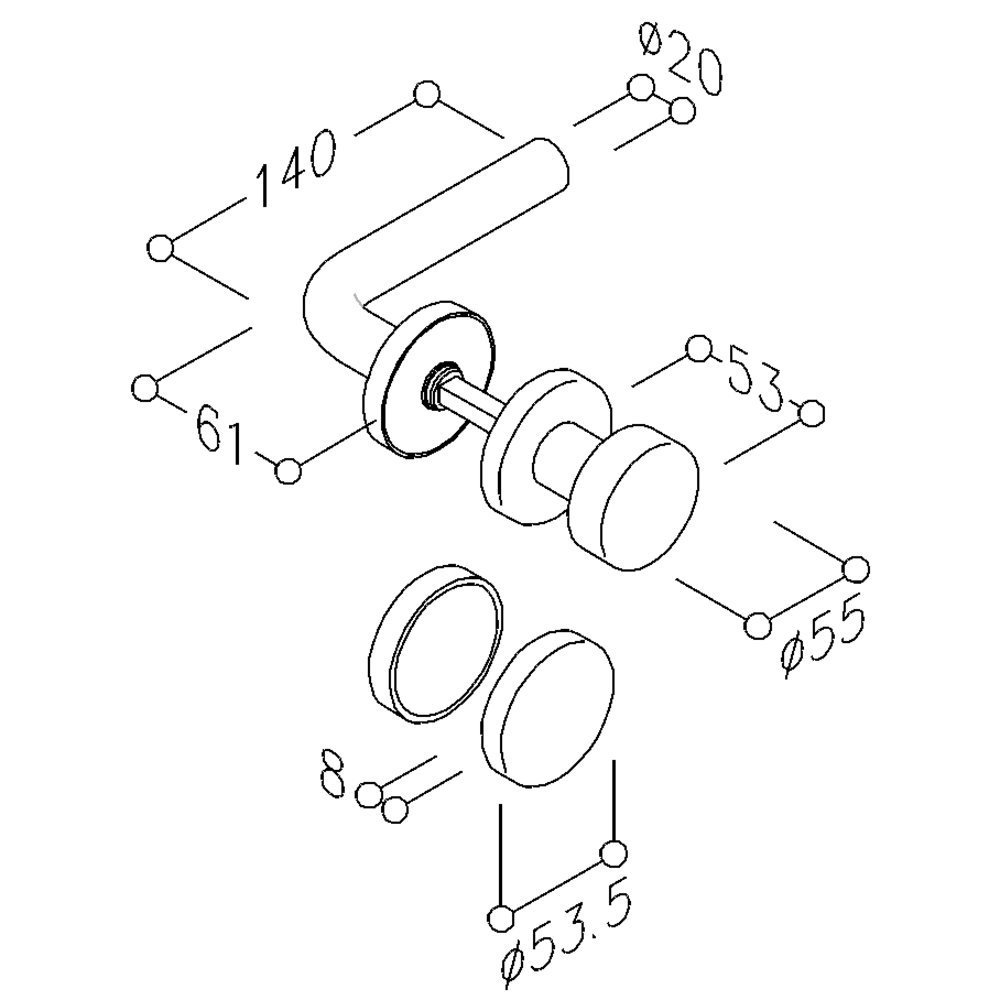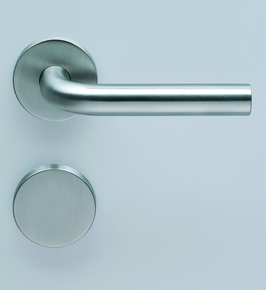 HELO, Feuerhemmend-Wechselgarnitur, Abdeckung: mit Rosetten, Lochung: Blind, Vierkant: 9 mm, Modell: EST.WG, Modellnummer: FS 51/K5, Material: Edelstahl, Farbton: edelstahl, Oberfläche: fein matt, DIN-Richtung: DIN Links, Befestigungsart: verdeckt verschraubt, Befestigungstechnik: mit Stütznocken, Benutzerklasse: Klasse 4, Stärke Abdeckung außen: 8 mm, Stärke Abdeckung innen: 8 mm, Türstärke min.: 45 mm, Türstärke max.: 54 mm, Befestigungssystem: Stiftverbindung, Form: rund, Lagerung: Gleitlager, wartungsfrei, festdrehbar, Durchmesser: 53,5 mm, Türart: Außentüren, Türwerkstoff: Holz, Stahl, Drückerbefestigung: Wechselstift, Drückerform: L-Form, Drückerdurchmesser: 20 mm, Drückerlänge: 140 mm, Drückerhöhe: 53 mm, Eigenschaft: Knopf fest auf Rosette, Knopfform: rund, Knopfdurchmesser: 55 mm, Knopfhöhe: 45 mm, Norm: DIN 18273, DIN 18255, DIN EN 1906, Zulassung: für Feuerschutz, für Rauchschutz, Zusatzinformation: mit beschichteten Hülsenschrauben