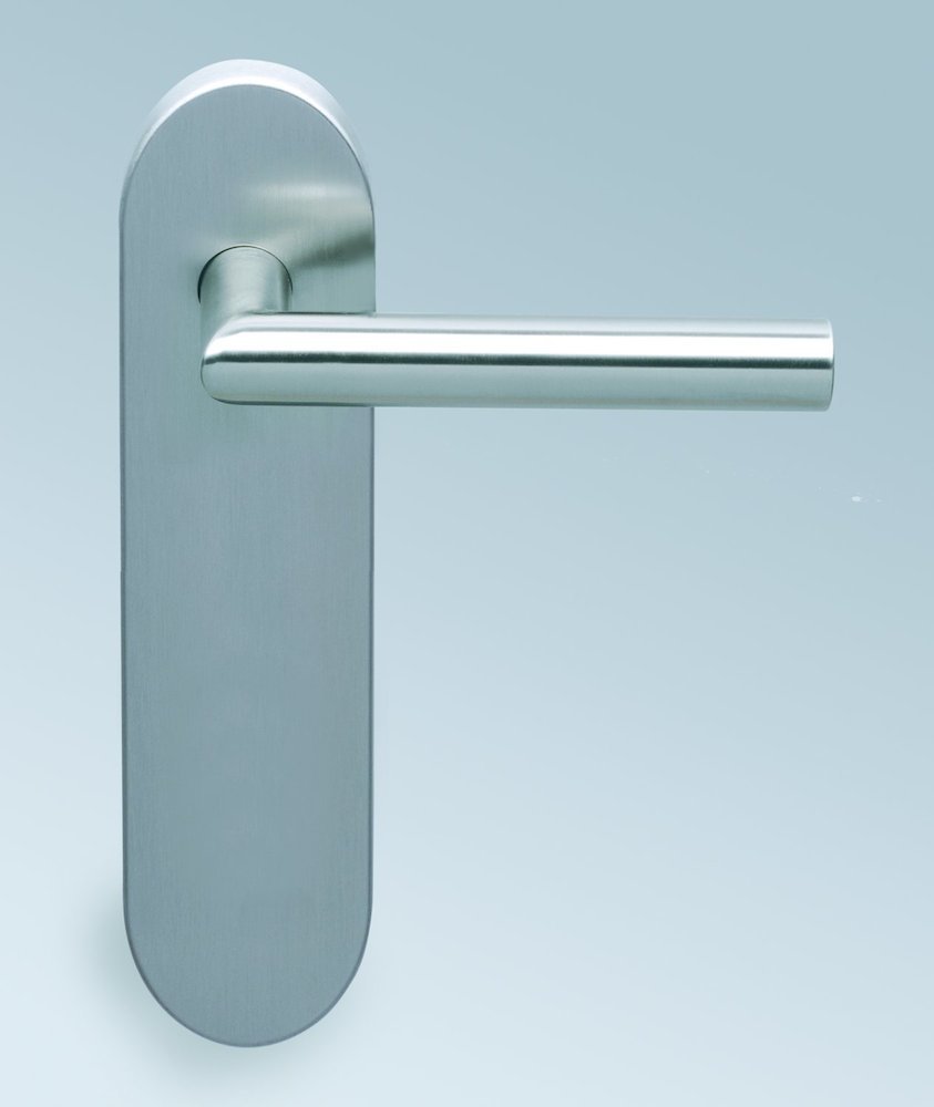 HELO Objekttür Wechselgarnitur, Abdeckung: Kurzschild, Modell: EST.WG, Modellnummer: 21, Lochung: Blind, Vierkant: 8, Material: edelstahl, Farbton: edelstahl, Oberfläche: fein matt, DIN-Richtung: DIN Links-Rechts, Lagerung: festdrehbar, wartungsfreies Gleitlager, Befestigungsart: verdeckt verschraubt, Befestigungstechnik: mit Stütznocken, Material Unterkonstruktion: Kunststoff-Stahlverbundbau, Befestigungssystem: Stiftverbindung, Drückerform: Gehrung, Drückerdurchmesser: 20 mm, Drückerhöhe: 53 mm, Drückerlänge: 140 mm, Eigenschaft: Knopf fest auf Schild, Länge: 168 mm, Breite: 44 mm, Knopfform: rund, Knopfdurchmesser: 55 mm, Knopfhöhe: 45 mm, Anschlagrichtung: Drücker rechts/links verwendbar, Drückerbefestigung: Wechselstift, Form: oval, Schildstärke außen: 10 mm, Schildstärke innen: 10 mm, Türstärke min.: 35 mm, Türstärke max.: 44 mm, Türart: Außentüren, Türwerkstoff: Holz, stahl, Benutzerklasse: Klasse 4, Norm: DIN 18255, DIN EN 1906