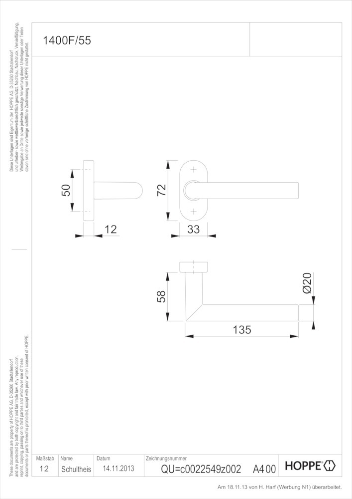 | Anschlagrichtung: | Drücker rechts/links verwendbar |
