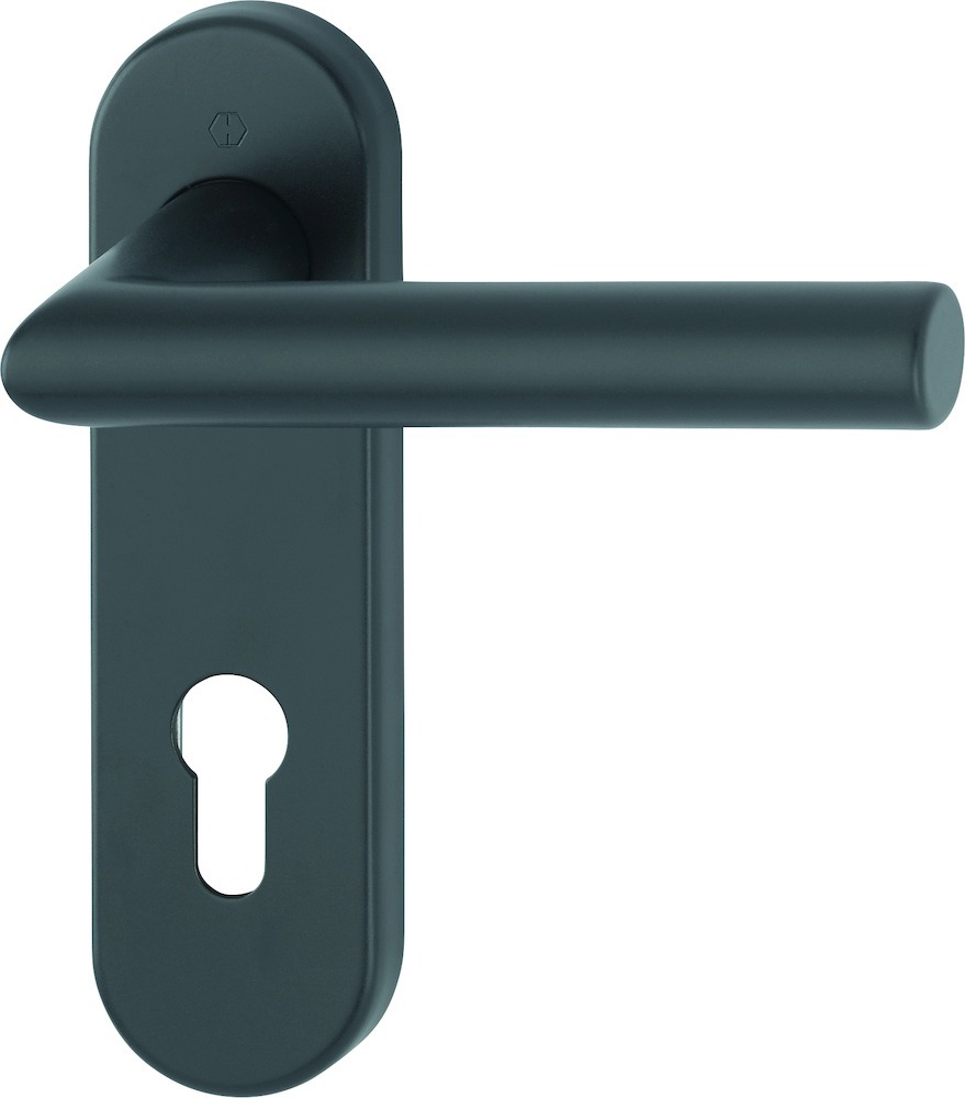 Drückergarnitur Amsterdam 1400/353KH; Produkttyp: Drückergarnitur; Produkttyp (Hersteller): Drückergarnitur; Ausführung: Kurzschild; Befestigungsart: verdeckt verschraubt; Befestigungstechnik: mit Stütznocken; Form: oval; Vierkant: 8 mm; Material: Aluminium; Material Unterkonstruktion: Stahl; Form Türgriff (innen): Gehrung; Form Türgriff (außen): Gehrung; Durchmesser Türgriff (innen): 21 mm; Durchmesser Türgriff (außen): 21 mm; Länge Türgriff (innen): 137 mm; Länge Türgriff (außen): 137 mm; Höhe Türgriff (innen): 58 mm; Höhe Türgriff (außen): 58 mm; Schildbreite außen: 45 mm; Schildbreite innen: 45 mm; Schildlänge außen: 166 mm; Schildlänge innen: 166 mm; Schildstärke außen: 10 mm; Schildstärke innen: 10 mm; Lagerung: festdrehbar,mit Rückholfeder,wartungsfreies Gleitlager; Einsatzbereich: Objekttür; Türart: Vollblatt; Türwerkstoff: Holz,Stahl; Norm: DIN EN 1906; Lochung: Profilzylinder gelocht; Entfernung: 72 mm; DIN-Richtung: DIN Links-Rechts; Farbe: schwarz; Farbton: schwarz matt; Ausführung Vierkant: Profilstift; Türstärke min.: 40 mm; Türstärke max.: 45 mm; EN 1906 - Gebrauchskategorie: Klasse 4; EN 1906 - Dauerhaftigkeit: Klasse 7; EN 1906 - Türmasse: -; EN 1906 - Feuerbeständigkeit: Klasse 0; EN 1906 - Sicherheit: Klasse 1; EN 1906 - Korrosionsbeständigkeit: Klasse 5; EN 1906 - Einbruchschutz: Klasse 0; EN 1906 - Ausführungsart: Typ A; Klassifizierungsschlüssel EN 1906: 47*-0150A